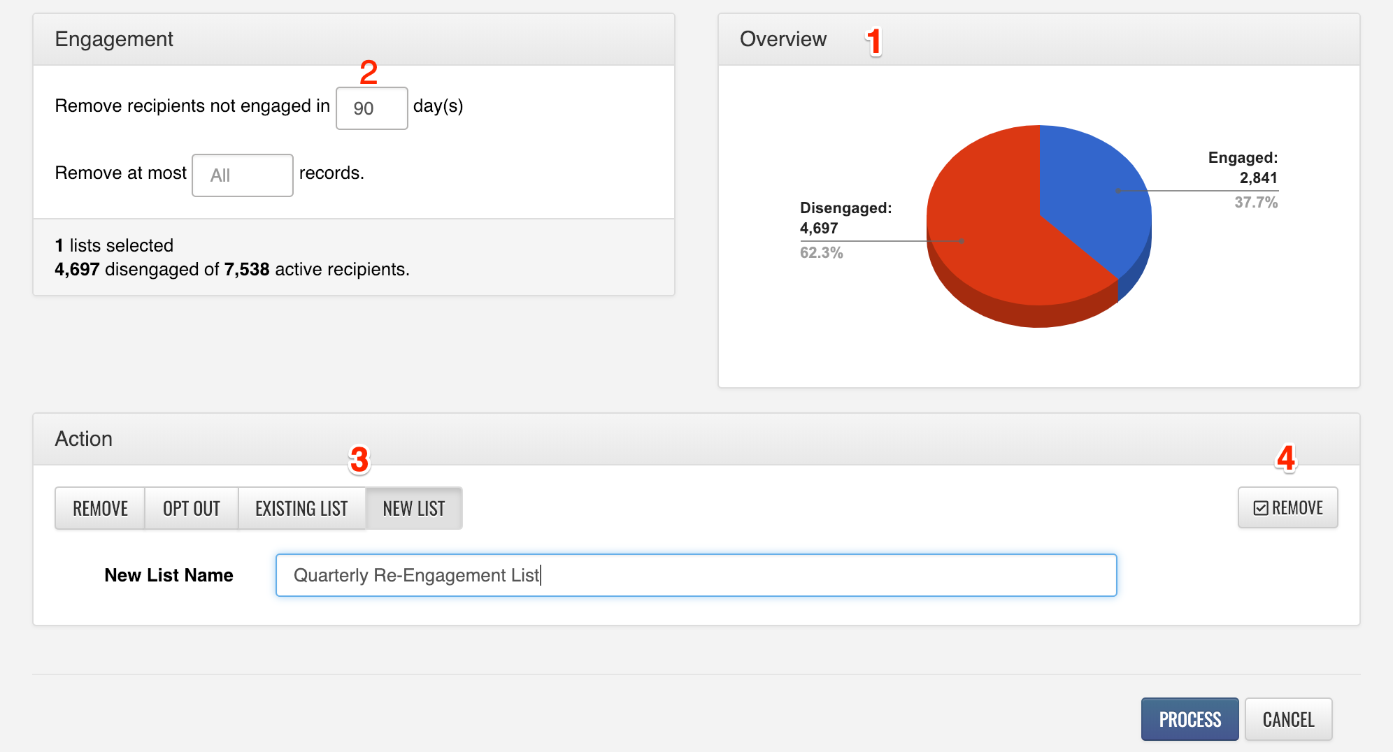 Recipient engagement is key to ongoing success. No one wants to waste their time sending to disinterested recipients. It's imperative that you remove non-responders from all of your lists regularly.