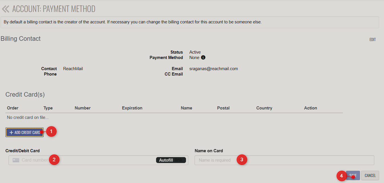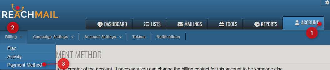 Directions on how to update your payment method/information within your ReachMail account.