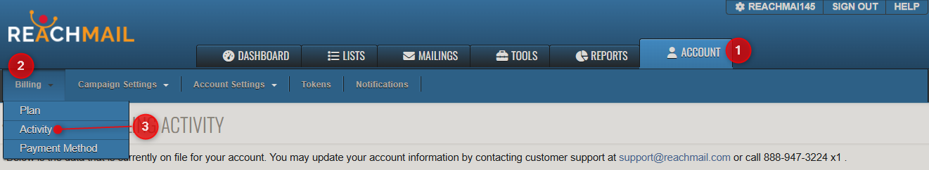 You will see a table of your recent invoices. Each row will detail a transaction type, amount, invoice number, an a brief description. Statements can be emailed by clicking the email icon next to the invoice number. Enter all the addresses you'd like to send the statement to in the email pop-up window (separate multiple addresses with commas) and a PDF copy of the invoice will be delivered to them.