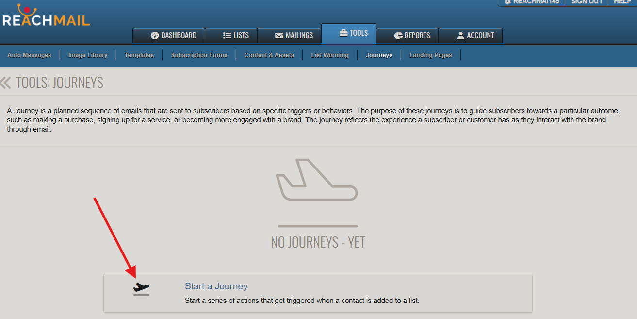 A Journey is a planned email sequence sent to subscribers based on specific triggers or behaviors. These journeys aim to guide subscribers towards a particular outcome, such as making a purchase, signing up for a service, or becoming more engaged with a brand. The journey reflects the experience a subscriber or customer has as they interact with the brand through email.