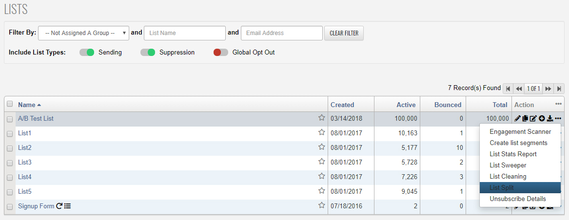List Size - This will show the number of active recipients you will be starting with before the split.