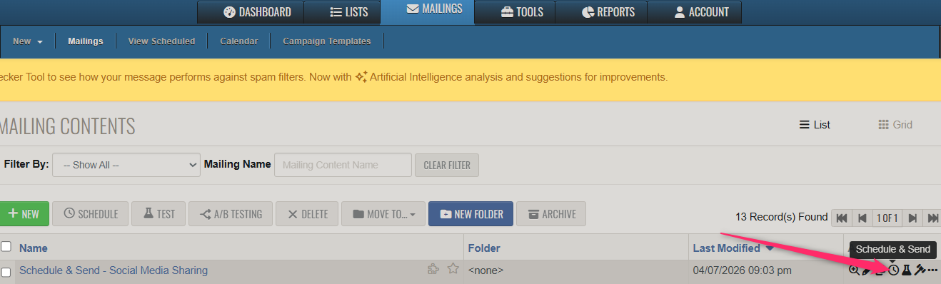 - Go to Schedule & Send for your campaign