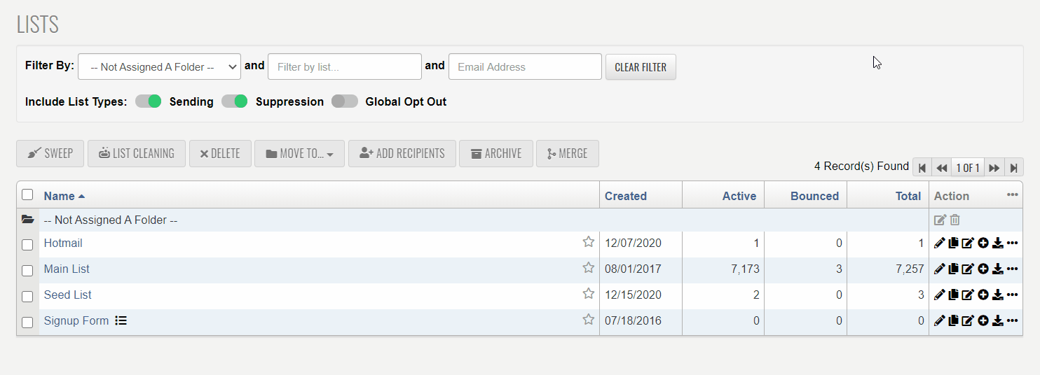 The Archived Folder is a folder available to every customer by default for your Lists and Mailings. You can move a List or Mailing to the Archived Folder. Once that list or mailing has been archived it will prevent it from being loaded when accessing the List or Mailings tab, scheduling a mailing, or any other operation. This folder's contents will only appear when you select that folder. This allows you to remove clutter from your Lists or Mailings tab without deleting data. Keep in mind, archived lists still count toward your account total.